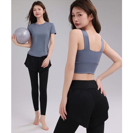 ブラ・半袖トップス・パンツ一体型レギンスの3点セットで