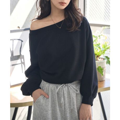 ボートネックでもワンショルダーでもネックラインを美しく、華奢にみせてくれる大人のスウェットトップスです◎