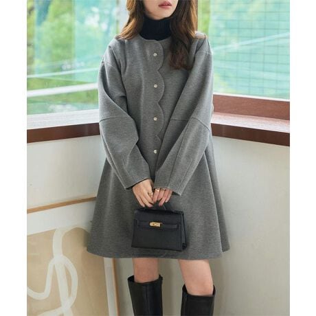 ふんわりとしたボリューム感と立体的なフォルムが魅力のダイバー素材スカラップコート。