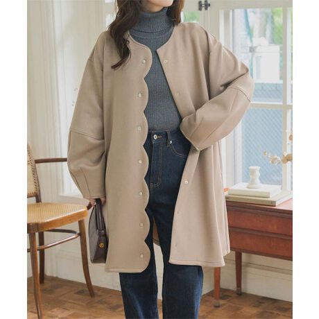 ふんわりとしたボリューム感と立体的なフォルムが魅力のダイバー素材スカラップコート。