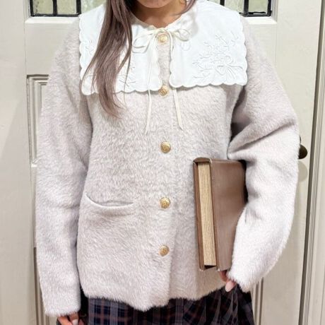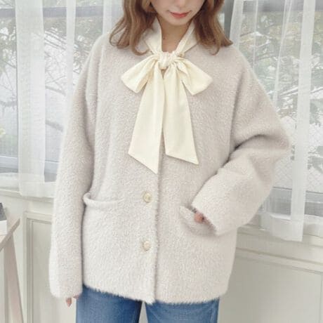 ふわふわとした柔らかなシャギー素材が、シーズンムードを演出してくれるニットカーディガン。