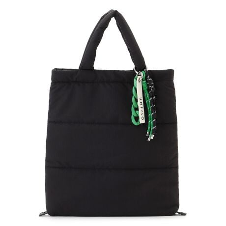 ■デザイン底のスナップボタンで変形出来る3WAYトート。トート、舟形、ショルダーの嬉しい3WAY仕様です。舟形にするとマチが作られ、ペットボトル等の厚みのあるモノも入れやすく、小さくても収納力のあるデザインです。中綿が入っているので、クッション性もあり、タブレット端末なども安心して持ち運びできます。トレンドのチャーム付きで、アクセサリー感覚のワンポイントに。取り外し可能なので、外してお手持ちのバッグにつけるのもおすすめです。