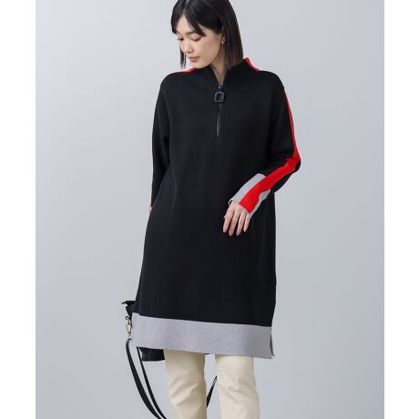 バイカラーの切り替えと袖のライン使いがアクセントになった、今年らしいハーフジップニットチュニックです。スポーティな要素を取り入れつつも、上品なカラー配色とすっきり見えるシルエットで“大人のカジュアル”に仕上げています。ジップを開けて抜け感を出したり、閉めてハイネックで着たりと表情の変化も楽しめる一枚です。