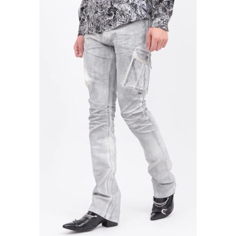 全面にかすれ調の箔をのせたカーゴデニム。