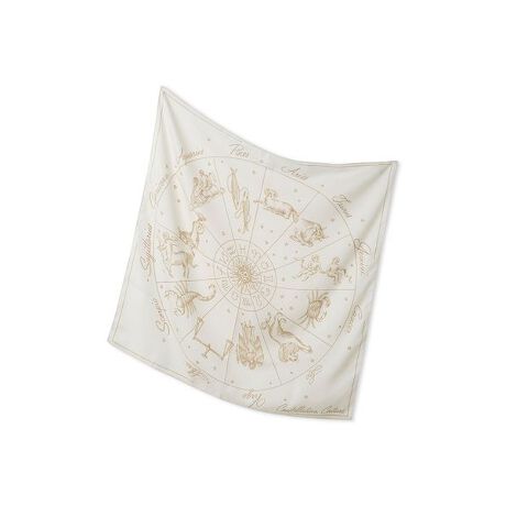 コーディネートのアクセントにぴったりなエトワールスカーフは、12星座プレートをダイナミックにプリントしたロマンティックなデザイン。