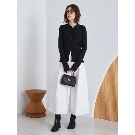 トップスは、上品なラメ糸を使用した、適度な肉感のある編み地。再生繊維を使用したリッチな質感です。