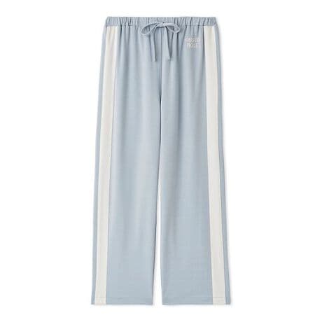 キャッチーなカラーリングのサイドラインがおしゃれな、ワンマイルにもご使用いただけるインレイカットソーのロングパンツ。飽きのこないベーシックな色使いで、左腰にもロゴ刺繍を小さく添えました。程良い厚みがあって透けにくく、ジャージ感覚でお楽しみいただける1本です。色はオフホワイト、ブルー、グレーの3色展開。同シリーズのロングTシャツとコーディネートしてお楽しみください。