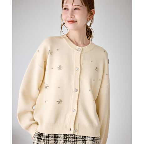 ・ボディ部分にビジューモチーフをつけることにより、とても華やかでホリデイムードなカーディガン。