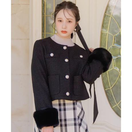 キュートな素材感とエレガントなディテールが叶える上品コーデ【Design】・くるくるとしたブークレ生地を使用したノーカラーコート。・ハイウエストのボトムスと相性抜群なショート丈のアイテムです。・パールボタンと袖ファーで華やかな仕上がり♪・ハイネックニットやリボンタイブラウスなど、ボリュームのあるトップスと着回しコーデがおすすめ◎・袖ファーは取り外し可能なので、気分に合わせてアレンジいただけます!・ポケット付き。【Fabric】・独特な質感が魅力のブークレ生地を使用。・裏地付きなので着脱ぎもスムーズ。・ホワイト、ピンクベージュ、ブラックの3色展開になります。【Care】・ドライクリーニング