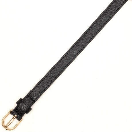 [型番:23SEJE17W]女性らしさを引き立てる細身ベルトです。ゴールドのバックルとサフィアーノの型押しが上品な印象です。オフィスで活躍するスタイルはもちろん、お出掛け着のワンピースやデニムなど、コーディネートの幅が広がる可愛い細身ベルトです。
