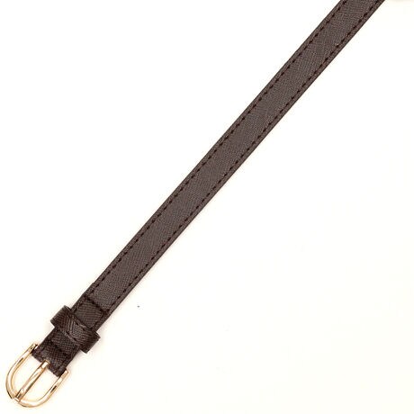 [型番:23SEJE17W]女性らしさを引き立てる細身ベルトです。ゴールドのバックルとサフィアーノの型押しが上品な印象です。オフィスで活躍するスタイルはもちろん、お出掛け着のワンピースやデニムなど、コーディネートの幅が広がる可愛い細身ベルトです。