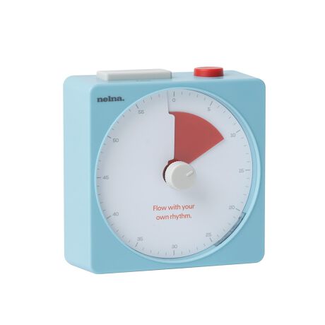 Nelna Focus-On Timerは、残り時間を色で視覚的に伝えるアナログ式タイマーです。カチカチ音のしない静音設計・光で知らせるライトアラームなど、毎日の集中時間をサポートする工夫を詰め込んだ、北欧風デザインのタイマーです。