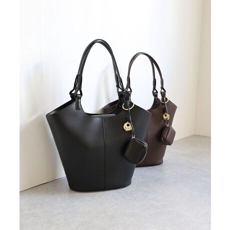 ニュアンスパーツが付いたポーチチャーム付きA4トートバッグ