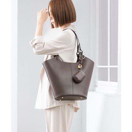 ニュアンスパーツが付いたポーチチャーム付きA4トートバッグ