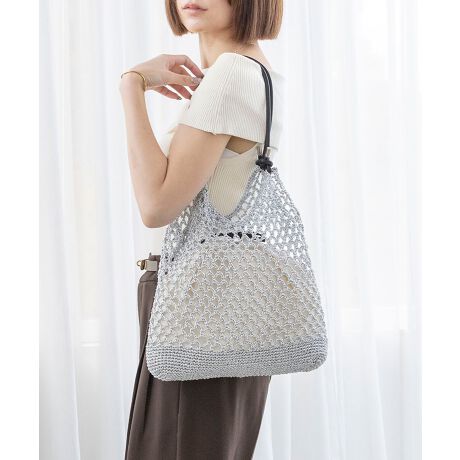 【ミディアムサイズ/デイリー/軽量】メタリックコードメッシュトートバッグ