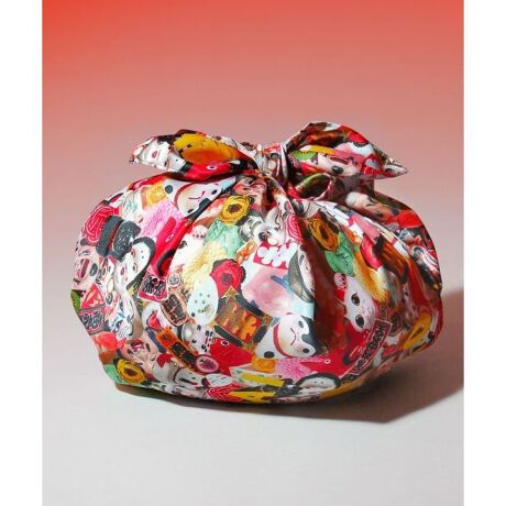 [型番:73RP5301-2025]日本の縁起物や祝いものを詰め込んだ、賑やかな「開運来福」風呂敷。撥水生地なので、ちょっとした雨でも中の荷物を守ってくれます。