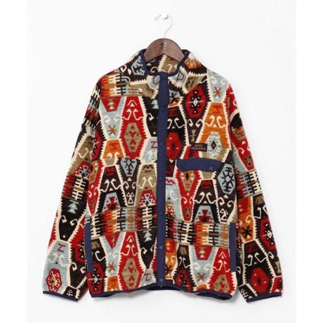 [型番:JSU-5301-2025]【Amina×grn】暖かく軽量な、普段使いに最適なやわらかフリースジャケット。温度調整が難しい時期やアウトドアで、簡単に脱ぎ着できる機能的な一枚。シルクロードにある絨毯の産地「カーペットベルト」から柄の着想を得た、オリジナリティあふれる柄が魅力的。胸と両サイドにポケット付き。