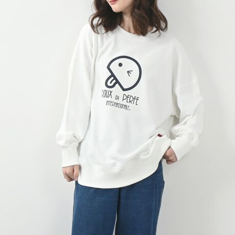 フロントにベーちゃんプリントが入ったシンプルトレーナー。