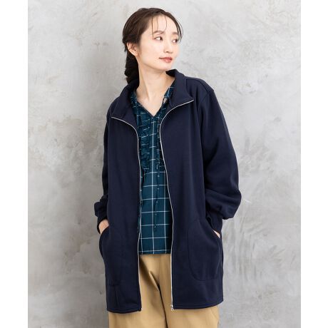 すっきりとしたスタンドカラーと長めの丈感で、大人のきれいめカジュアルに仕上がります。