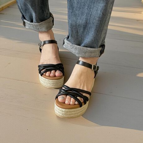 マルイウェブチャネル   /   シューズ   /   サンダル   /   【スペイン/本革/厚底/ウェッジヒール/8cm】クロスバーストラップジュートサンダル