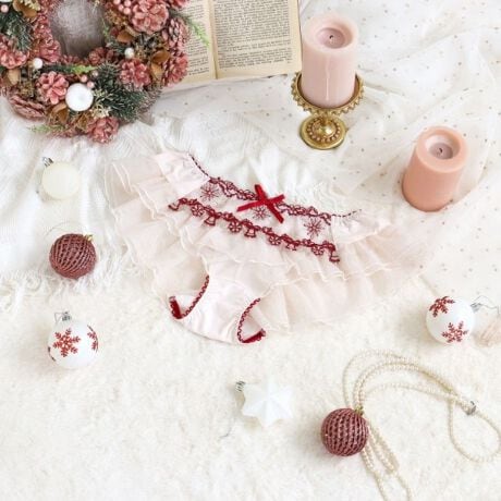 キラキラと揺れるオーナメントをモチーフにした、リサマリのクリスマスコレクションです。存在感のあるケミカルナローレースには、窓辺に飾られているリボンやベルをふんだんに刺繍して、オーナメントがゆらゆらと揺れている様子を可愛らしく表現。フロント上辺には窓の外に降り積もる雪の結晶を、たっぷりのラメ糸で豪華にあしらいました。年に1度のクリスマスシーズンは、Risa Magliのランジェリーでヒロインに。心ときめく素敵なひと時をお過ごしください。
