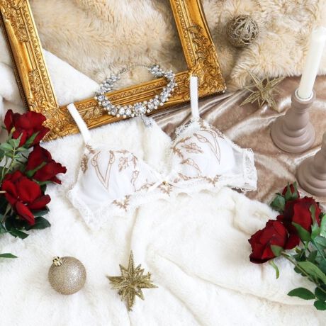 クリスマスには欠かせないスワッグや壁飾りをモチーフにした、リサマリのクリスマスコレクションです。レース全体に幾何学模様をあしらい、ひときわ華やかな仕上がりに。ふんだんにラメ糸を刺繍して、気品あふれる輝きと斬新なカラーリングが、エレガントな大人のクリスマスを演出します。バックスタイルにはサーモカットのアップリケをプラスしました。年に1度のクリスマスシーズンは、Risa Magliのランジェリーでヒロインに。ワンランク上の美しさを演出した 「Risa Magli Reine(レーヌ)」ブランドの世界観をお楽しみください。