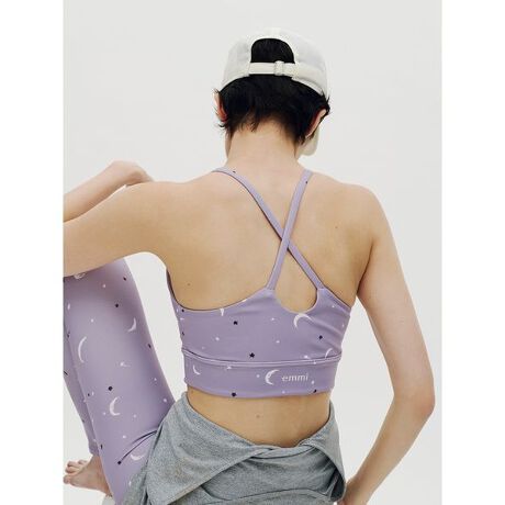 人気のムーン柄に、さりげなく星柄を加えたemmiオリジナルプリントが映える、ブラトップ&レギンスのセットアップ。