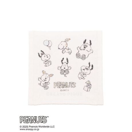 まるでおもちゃ箱から飛び出してきたような、小さくて無邪気な6きょうだい。PEANUTSとgelato piqueのコラボレーションシリーズから、スヌーピーときょうだいたちの子犬時代を描いた『デイジーヒルパピーズ』をモチーフとしたコレクションが生まれました。スヌーピーときょうだいたちの絵柄が大集合した、ふんわり軽い’ベビモコ’素材のキッズブランケット。スヌーピーとアンディ、スパイク、オラフ、マーブルス、ベルの6匹が楽しそうに遊んでいる絵柄がキュートです。大きなロゴジャガード入りで、インテリアとしてもキャッチーな仕上がり。膝掛けやお昼寝などに重宝します。色はクリームとピンクの2色展開。同シリーズのルームウェアと合わせたり、ギフトにもおすすめのアイテムです。