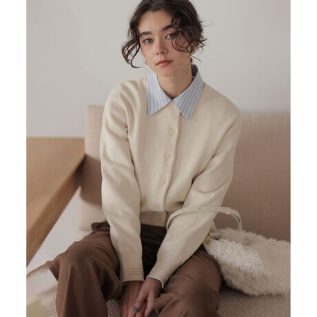 【スタッフコメント】▼身長158cm|着用サイズ2(通常着用サイズM)ストレッチ性と程よい滑らかさのある素材で着心地抜群です。一見シンプルなカーディガンですがトレンドライクなシルエットにアップデートされた是非ご着用いただきたい1着です。