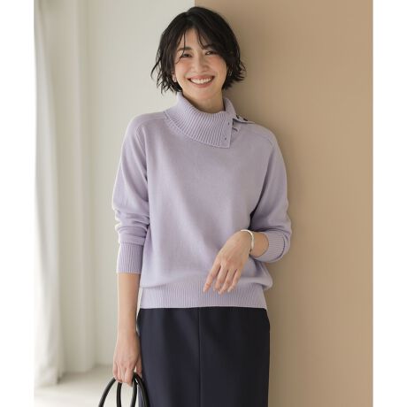 サイド釦のアレンジで、シャツ襟からタートルまで!ふんわりとした肌触りの襟付きニット