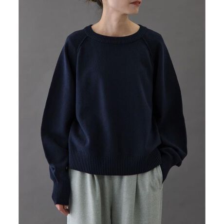 シンプルながらもゆったりと着られるニットをご用意しました。お手入れしやすい素材でお作りし、見た目以上に軽く柔らかな着心地が特徴です。全体的にゆとりをもたせさらに肩周りをカバーしてくれるラグランスリーブを採用し、またステッチがポイントになってくれます。着丈も若干長くし、一枚でも様になる一着が完成です。