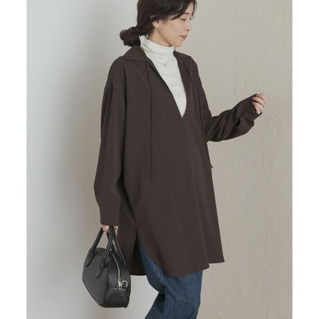 季節をまたいで活躍!ポリエステル素材のスキッパーチュニック