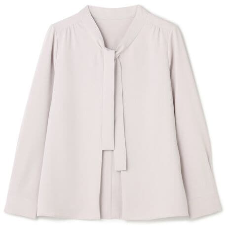 やわらかな落ち感と上品な光沢感が魅力のリボンタイブラウス。