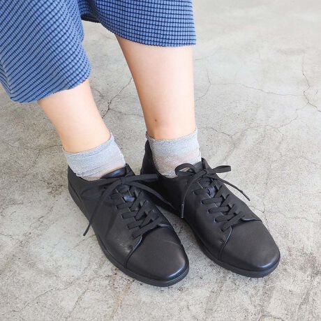 平紐がゴム仕様なので着脱時にスムーズなのと程よいホールド感があります。かたく触れてくる所が無く軽量です。プレーンなので合わせに困った時の1足として活躍しそう。
