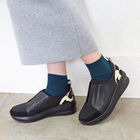 異素材のコンビネーションが、ミニマルなフォルムに奥行きを生み、気分転換にもぴったりの一足です。