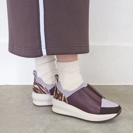 異素材のコンビネーションが、ミニマルなフォルムに奥行きを生み、気分転換にもぴったりの一足です。