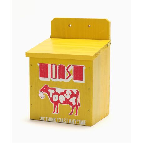 日本では、牛乳箱はかつてどの家庭の玄関先にもあった日常のシンボル。TOAST はそのクラシックなモチーフを現代的にアレンジしました。ピンクの牛がトーストをくわえた遊び心あるグラフィック、大胆で印象的なTOASTロゴ、そして「WE THINK TOAST ANYTIME」のメッセージ。日常のひとときを、もっと楽しく、もっと想像的に。単なる牛乳箱ではなく、アート性を兼ね備えた収納&インテリアアイテム。自宅やアトリエ、ショップのディスプレイとしても存在感を放つ、注目のレトロモダンプロダクトです。