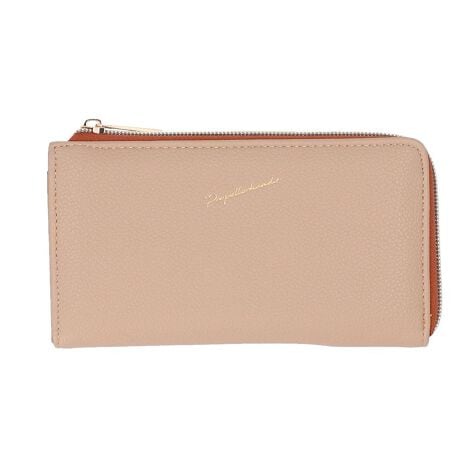 【デザイン性と利便性を両立】収納力があり、使いやすいシンプル設計。「しぼ合皮L字ファスナーウォレット」が登場。【L字ファスナーでサッと開く】ガバッと大きく開くL字ファスナー構造。取り出しやすいのも嬉しいポイント。【現金派にうれしい設計】お札・小銭・カードすべてが一目で見えるワイドな開き。会計時にストレスフリーな使い心地。【たっぷり収納で整理しやすい】内側や外側にポケットを多数配置。マチ付きだからお札やレシートもすっきり収まる収納力!【かさばらないスリムさ】薄マチ構造で、カバンの中でかさばらないスリムさも魅力の一つ。【上品な見た目とやさしい手ざわり】シボ感のある柔らかな合皮素材。ゴールドのロゴやファスナーが上品さをプラス。