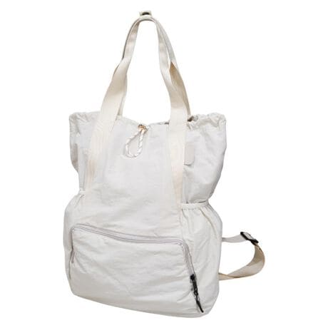 【カンタン仕分け上手】メインルームが上下に分かれて整頓上手♪変身する軽量巾着バッグが「TakeMe」から発売。【スタイルで選べる使い方】トートにもリュックにもなる2WAY仕様で通勤も休日も快適♪【軽量設計】長時間持ち歩いても疲れない◎【巾着タイプ】バッグの上部は巾着のように絞れるタイプで調節もラクラク。【保冷機能で安心携帯】サイドポケットは保冷生地使用でドリンクをほどよくキープ〇【上下で分ける収納力】ファスナーで上下に分けられる2スペース構造。仕切りを外して使う場合はA4がしっかり入るサイズ感。【下部へつながる便利さ】バッグ下部につながるポケットで荷物の出し入れがスムーズ〇【すっきり収まる工夫】ショルダーベルトを背面ポケットにしまえて邪魔にならない。【雨の日でも安心】撥水加工なので突然の雨でも中身をしっかりガード!【おしゃれな革タグ】革のロゴタグがシンプルなデザインに品のあるアクセント!