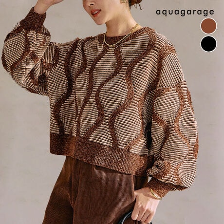 表情豊かなジャガード編みが魅力のショートニットトップス。