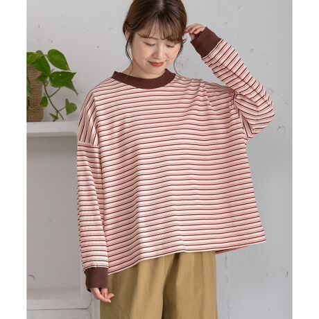 オーバーシルエットが女性らしい抜け感を作るワッフルボーダーのプルオーバー。ゆるっとしたサイズ感を楽しめます。1枚でポイントになるカラーリングのワッフル生地をチョイスし、リブも配色使いでアクセントにしました。デニムやスラックスと合わせるのはもちろん、スウェットやニットを重ねるスタイリングもオススメです。