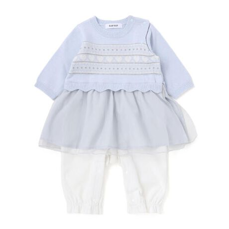ふんわり柔らかなニット素材を使用した、女の子ベビー用長袖ドッキングカバーオール。