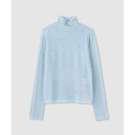 身頃と同色で染めた肩のパールがアクセントになっており綺麗目な印象に。