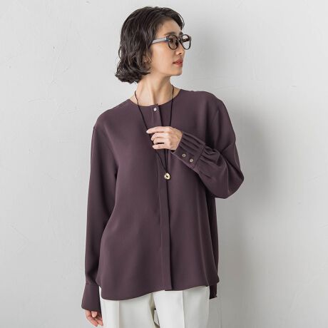 la.f...で定番のメランジツイルの生地を使用したブラウス。
