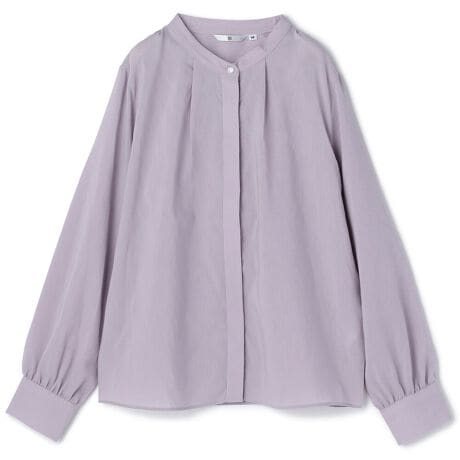 【長袖】洗えるバンドカラ―ブラウス ラベンダー ストレッチ