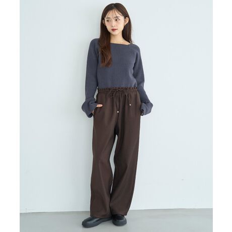 ウエストはゴム仕様+調整リボン付きで、お好みのフィット感に調整可能。