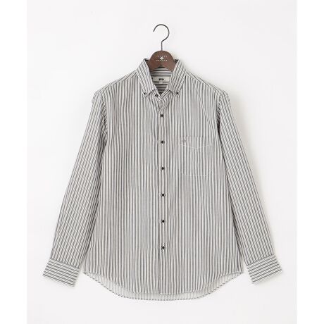 柄の異なるストライプを組み合わせ、織り柄による立体感と配色のコントラストを際立たせたデザインが特徴です。衿元はボタンダウンカラーを採用し、カチッとしすぎない上品な印象に仕上げました。さらに製品洗いを施すことで、買ったその日から身体に馴染むような、こなれた自然な風合いを実現しています。一枚着としてはもちろん、ジャケットやニットのインナーとしてもコーディネートの主役となる、存在感のあるシャツです。