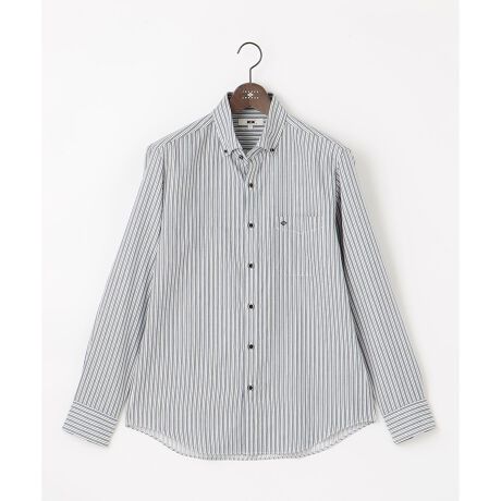 柄の異なるストライプを組み合わせ、織り柄による立体感と配色のコントラストを際立たせたデザインが特徴です。衿元はボタンダウンカラーを採用し、カチッとしすぎない上品な印象に仕上げました。さらに製品洗いを施すことで、買ったその日から身体に馴染むような、こなれた自然な風合いを実現しています。一枚着としてはもちろん、ジャケットやニットのインナーとしてもコーディネートの主役となる、存在感のあるシャツです。