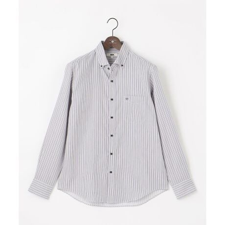 柄の異なるストライプを組み合わせ、織り柄による立体感と配色のコントラストを際立たせたデザインが特徴です。衿元はボタンダウンカラーを採用し、カチッとしすぎない上品な印象に仕上げました。さらに製品洗いを施すことで、買ったその日から身体に馴染むような、こなれた自然な風合いを実現しています。一枚着としてはもちろん、ジャケットやニットのインナーとしてもコーディネートの主役となる、存在感のあるシャツです。