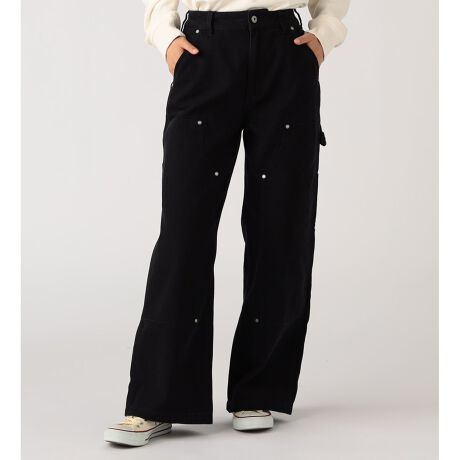 [型番:DA881E-0001]膝部分は2重構造になっており、補強性を高めたデザインになっています。はと目のボタンがデザインのアクセントに。ゆとりのあるルーズフィットで動きやすい着心地を実現。